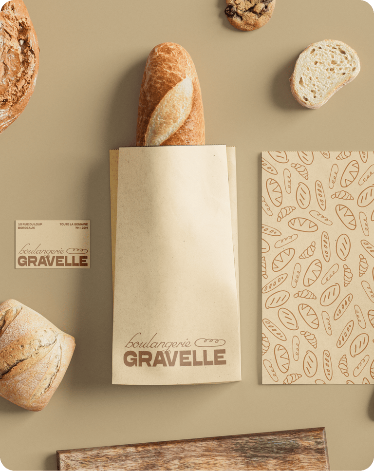 Le projet de branding de la Boulangerie Gravelle s’appuie sur un patrimoine fort et cherche à retranscrire l’authenticité de l’artisanat de cette cuisine tout en jouant avec des touches d’illustration.